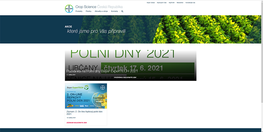 Společnost Bayer se zaměřuje na inovace a má dlouholetou tradici v oblasti výzkumu a vývoje. Své odborné znalosti využíváme k řešení globálních výzev a usilujeme o zlepšení životů lidí po celém světě. To, čeho se v zemědělském odvětví snažíme dosáhnout, se odvíjí od poslání skupiny Bayer vyjádřeného mottem „Bayer: Věda pro lepší život“. Naším příspěvkem pro společnost je snaha o zajištění dostatečného přísunu vysoce kvalitních potravin, krmiv, vlákniny a obnovitelných surovin.